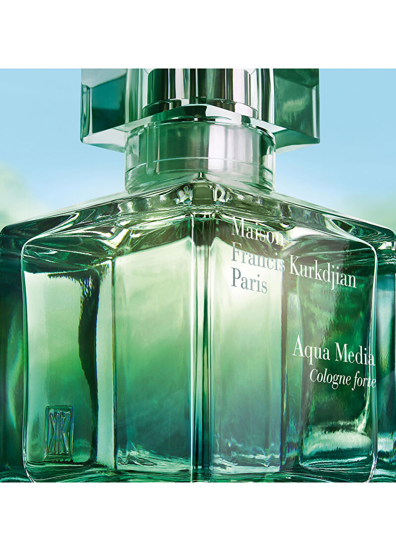 Hem suyu hem de ışığı çağrıştıran yeşil, gökkuşağı prizmasının orta rengidir ve hareket halindeki dengeyi yansıtır Bergamot, mineçiçeği, tatlı rezene, hedione ve odunsu misk akoru, Aqua Media Cologne forte'nin canlandırıcı tazeliğinde vücut bulmuşturBergamot, tatlı rezene, hedione, misk