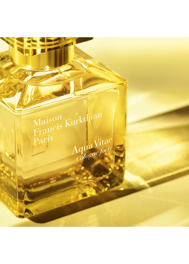 Mandalina, bergamota parlak bir tazelik vererek aydınlık ve güneşli bir çiçek kokusu ortaya çıkarır Sıcak bir ışık halesi içinde uyum içinde titreşen Aqua Vitae Cologne forte, silajı güneşle doyurulmuş ve sandal ağacı notasıyla güçlendirilmiş şehvetli misklerledolu şımartıcı bir parfümdürBergamot yağı, mandalina yağı, misk