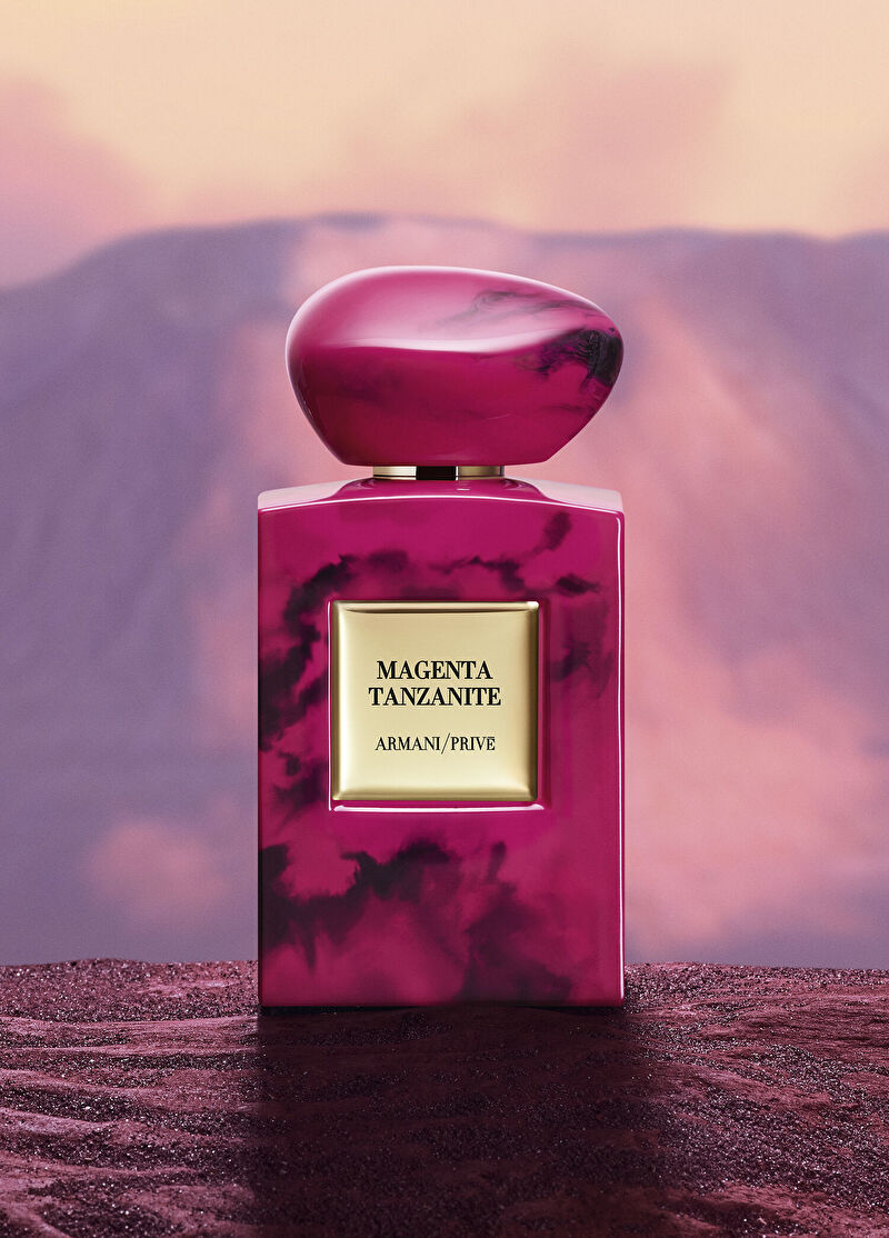 Yeni mükemmel ikili : Indigo Tanzanite ve Magenta Tanzanite Afrika’nın göz alıcı renklerini teslim ediyor Magenta Tanzanite, Tanzanit taşının magenta rengini almıştır, bu zamana ait olmayan bir atmosferi canlandırır Kahve ve yeşil tütün yaprağının eşsiz uyumu etrafa sıcaklık saçarken kakule, zencefil ve bergamotu ile ferahlık ve acılığın kontrastı kurulur Huzur ve vahşi doğa, bu parfümde birleşir Armani Privé Magenta Tanzanite Afrika’nın sıcak