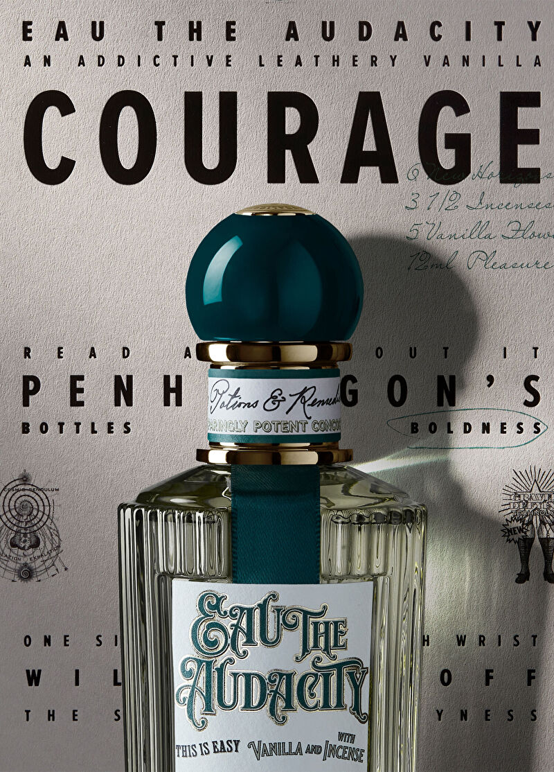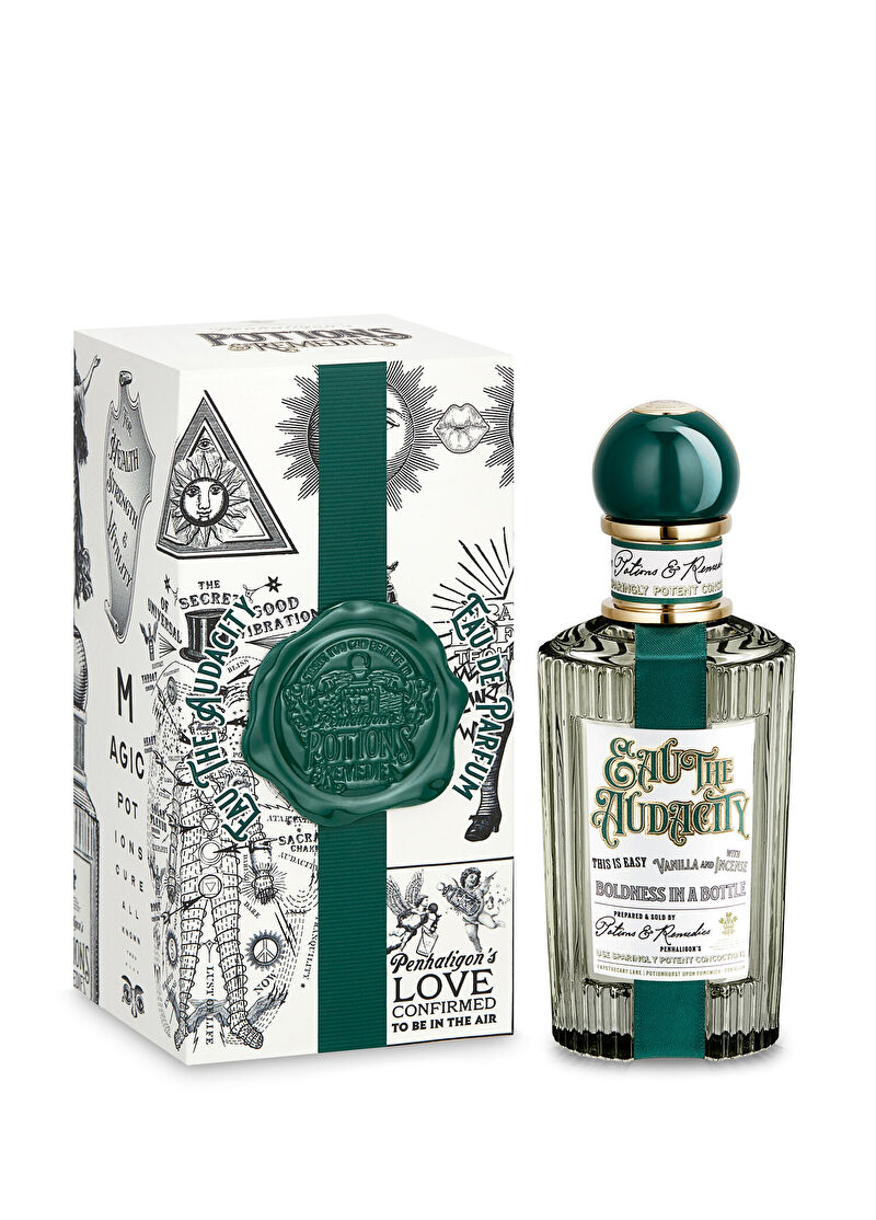 Penhaligon's dünyasının en yeni koleksiyonu Potions & Remedies üyelerinden biri olan Eau the Audacity ile ileriye doğru cesur bir adım atmaya hazır mısınız? Çünkü cesareti aşılayan ve ustalığın zincirlerinden kurtuluşu simgeleyen Eau the Audacity Portakal Çiçeğinin cüretkarlığıyla işe koyuluyor Karabiber, Safran Çiçeği, Tütsü, Vanilya ve Deri ise onu taçlandıran diğer notalardan