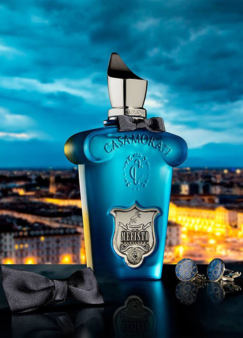 Ahşap zeminleri ve deri koltuklarıyla, politik ve edebi sohbetler için şık bir ortam sunan dönemin berber salonları, kaliteli ve zarif görünmek isteyen centilmenlerin tercihiydiMefisto Gentiluomo, değerli İtalyan narenciye yağları, Akdeniz lavanta çiçekleri ve iris özünün, sandal ve sedir ağacıyla mükemmel birleşimini sunar