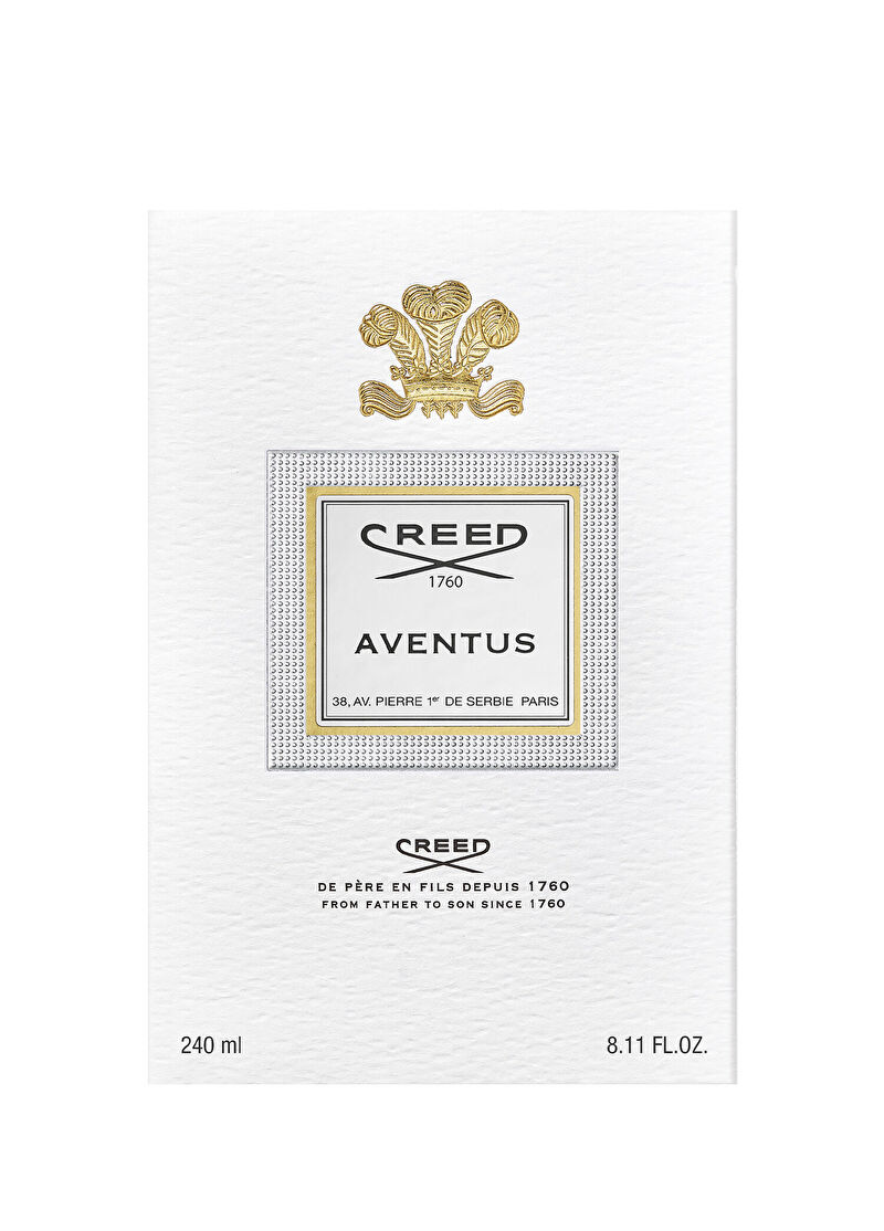 Creed, erkek doğasını anlama konusundaki olağanüstü yeteneğiyle tanınır ve bu yetenek en iyi şekilde görkemli Aventus kokusuyla yakalanır Odunsu ve meyvemsi notalar arasında denge kuran bu büyüleyici parfüm, başarı için çabalayan vizyonerleri kutlar ve sadece enseçkin beyefendilerle ilişkilendirilmesini sağlar Aventus, 240 ml yeni şişesi ile şimdi sizlerle Üst Nota: Siyah Frenk Üzümü, Bergamot Orta Nota: Isparta Gülü, Deri Alt Nota: Misk, Meşe