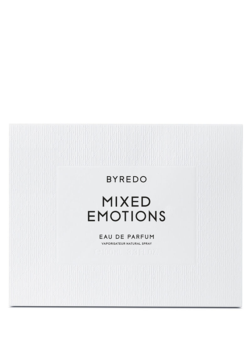 Byredo Mixed Emotions parfümü zamanımızın çalkantılı doğasını yansıtmak için tasarlanmış bir unisex bir kokudur Bu koku karışık duyguları barındırdığı isikrarsız gerçekleri ve akış içinde bir dünyayı yansıtmaktadır İkili ve uyumsuzlukların keşfi olan Mixed Emotions kokusu, tanıdık ve beklenmedik olanı, zıtlıklarında uyumlu bir koku yaratmak için tasarlanmıştırByredo'nun parçalanmış anılarıve soyut fikirleri kokuya çevirme felsefesinden yararl
