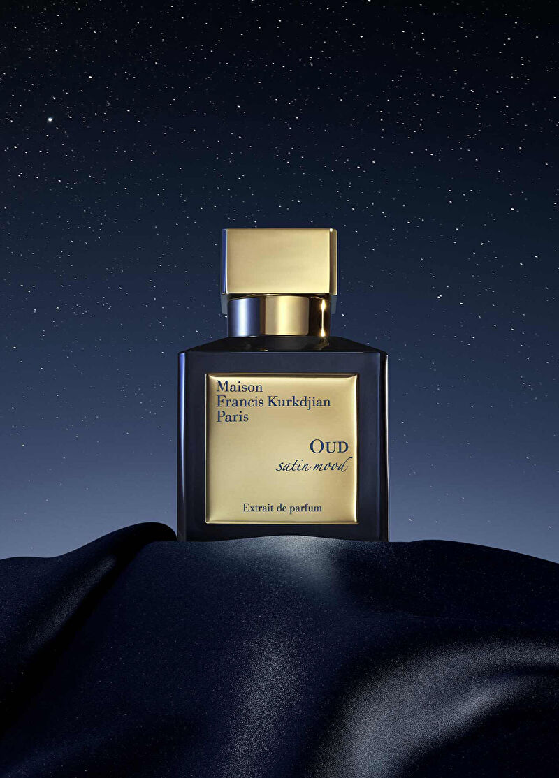 OUD satin mood eau de parfum satenin şehvetli hareketlerini çağrıştırdığı gibi, bu Extrait de parfum çeşidi de amber renginin sahipolduğu özellikleri vurguluyor Bol miktardaki gül, öd ağacının koyu tonlarını duygusallığıyla tamamlıyor; menekşe çiçekleri ise yumuşaklığıyla sarıyorMenekşe, sardunya, gül yağı, Styrax yağı, tarçın, öd ağacı, benzoin, vanilya
